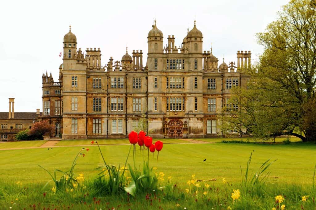 - History: Built by William Cecil, Lord Burghley (chief advisor to Queen Elizabeth I), in the 16th century, it is one of the largest houses in England. Its interiors are lavishly decorated with murals by the Italian artist Verrio, including the Heaven Room (used in the film as Lady Catherine’s drawing room).